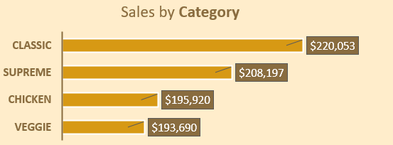 - Classic pizzas: $220,053 (The Classic Deluxe leads at $38,181).