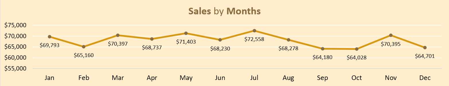 - Consider targeted marketing campaigns during low-sales months (February, September, October, December).