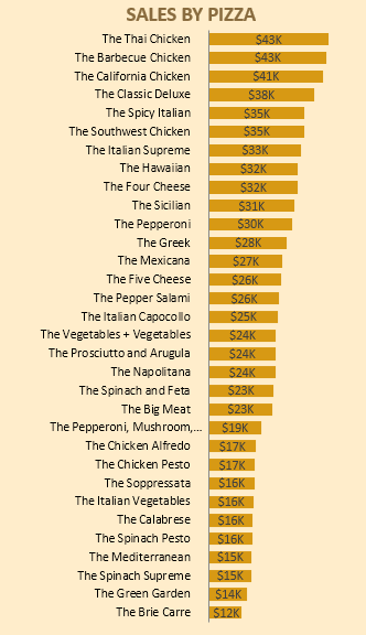 - Chicken pizzas: $195,920 (The Thai Chicken is the winner at $43,434).
