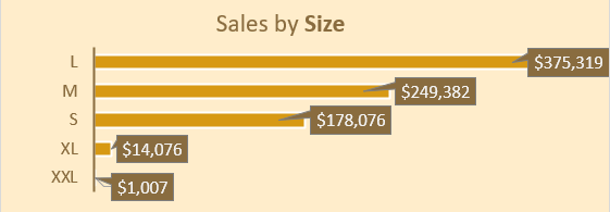 - XL and XXL sizes have only one pizza type (The Greek) with sales at $15,083.
